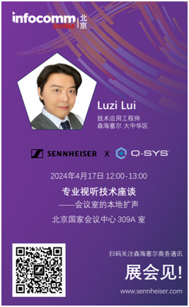 森海塞尔技术应用工程师Luzi Lui将在InfoComm分会场分享森海塞尔本地扩声技术的核心优势及广泛的应用场景,欢迎前来聆听!