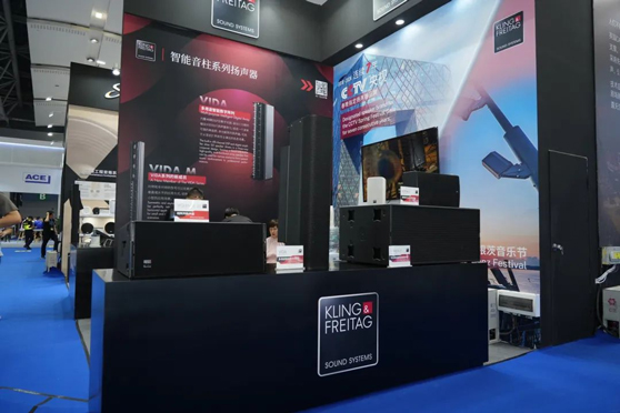 音王国际合作品牌德国KLING&FREITAG(K&F)展出了线阵列系列、智能音柱系列等众多重磅新品,其中VIDA系列多用途智能数字阵列凭借其卓越的性能和品质,连续七年被央视春晚选为指定音响系统。