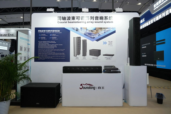 此展区展示创新的同轴波束可调阵列音响系统,具备指向可调、音视频一体化、免啸叫技术等特色,一套音响系统可一键切换实现会议、演出、培训等多种场景音响效果。