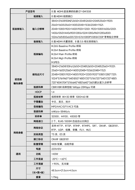 8路 HDMI高清编码器凭借其多路输入和高清编码能力,能够满足各种专业应用对高质量视频内容的需求,为专业视频制作、直播和记录提供了强大的技术支持。