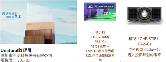 • 深圳市洲明科技股份有限公司:三大新品齐发——熄屏即艺术,开屏即显示的“纹理屏”;全球首款户外MIP产品UslimⅢ MIP O;黑科技产品Upanel AM0.6-T透明屏,打造新商业综合体光显解决方案。