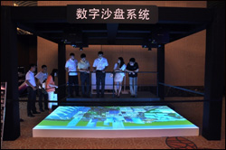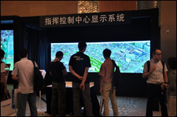 该系统由3台松下PT-FDX90投影机通过背投方式,采用融合技术设计打造而成。本展项可实现清晰的画面展示,并通过图像缩放功能进行准确的细节锁定,使观众能够根据需要对画面进行很好的指挥控制。 |