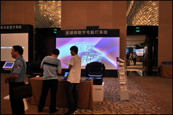 该系统由松下超高亮度投影新品PT-SDS20KC投影机运用3D主动立体技术打造而成,技术工程师对投影机及系统进行准确调试,现场佩戴特制的立体眼镜后能够明显的感受3D立体投影系统带来的震撼感觉。 |