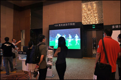本展项由两个LCD单台正投系统组成,依靠投影机特有的高亮度和强光感应功能,打造出了清晰且色彩丰富的画面,其中PT-SLW63C投影机展示了4:3的宽屏显示,给客户带去全新的视觉感受。同时LCD投影机小巧轻便的机身设计,也吸引了到场客户极高的关注。 |