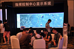 该系统由3台松下PT-FDX90投影机通过背投方式,采用融合技术设计打造而成。本展项可实现清晰的画面展示,并通过图像缩放功能进行准确的细节锁定,使观众能够根据需要对画面进行很好的指挥控制。 |