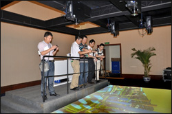该系统由松下超高亮度投影新品PT-SDS20KC投影机运用3D主动立体技术打造而成,技术工程师对投影机及系统进行准确调试,现场佩戴特制的立体眼镜后能够明显的感受3D立体投影系统带来的震撼感觉。 |