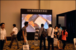 本系统由目前亮度系数最高的LCD投影机——松下PT-SLX16K投影机进行单台正投,向到场观众展示了高亮度的清晰影像,鲜艳且逼真的画面具有超震撼的视觉效果,充分展示出了松 下高亮度LCD投影产品的超强产品实力。
