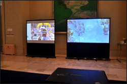 本展项由两个LCD单台正投系统组成,依靠投影机特有的高亮度和强光感应功能,打造出了清晰且色彩丰富的画面,其中PT-SLW63C投影机展示了4:3的宽屏显示,给客户带去全新的视觉感受。同时LCD投影机小巧轻便的机身设计,也吸引了到场客户极高的关注。 |