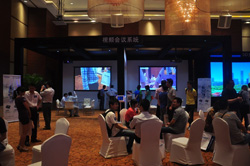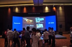 安恒集团北京安恒伟业系统工程技术有限公司技术总监苏亮先生介绍现场系统。苏总为大家详细介绍了现场的7套投影系统,并对各套系统在不同环境中的特殊设计进行了解说,让大家对松下工程投影系统有了更加明确的认识。