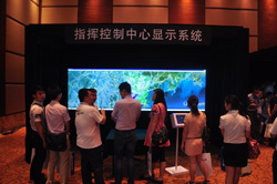 该系统由3台松下PT-FDX90投影机通过背投方式,采用融合技术设计打造而成。本展项可实现清晰的画面展示,并通过图像缩放功能进行准确的细节锁定,使观众能够根据需要对画面进行很好的指挥控制。 |