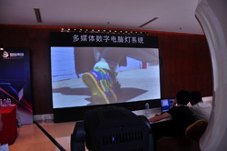 该系统由松下超高亮度投影新品PT-SDS20KC投影机运用3D主动立体技术,通过工程师对投影机及系统的准确调试打造而成,在展会现场佩戴特制的立体眼镜能够明显地感受3D立体投影系统带来的震撼感觉。 |