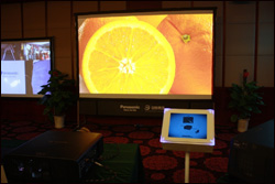 本系统由目前亮度系数最高的LCD投影机——松下PT-SLX16K投影机进行单台正投,向到场观众展示了高亮度的清晰影像,鲜艳且逼真的画面具有超震撼的视觉效果,充分展示出了松下高亮度LCD投影产品的超强产品实力。