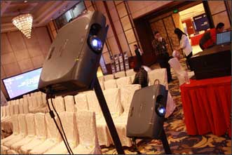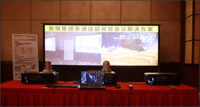 | 该展项使用两台松下液晶工程投影机PT-SLZ66C,采用正投融合投影方式,结合可提供完整的会议室宽屏幕显示投影解决方案的BAVG处理器,辅之以AW系列摄像机和HDVC Easy Connection服务,形成集中式良好的视听效果与操作简便的会议室方案。BAVG融合器支持外部信号采集,支持网络编码器采集,且支持会议室其他设备集中控制,尽可能全面满足各种会议室对融合器的要求,得到了客商的全面认可。 |
