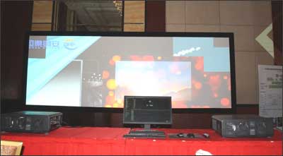 该系统结合松下最新的0.38:1超短焦镜头ET-DLE030C与单片DLP投影机PT-FDZ97C进行3D主动立体投影展出。0.38:1超短焦镜头领航于视频显示领域,实现重大科技突破,为更多复杂环境提供投影的可能,成为议论的焦点。 |