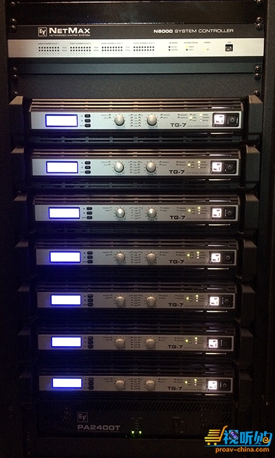 线性阵列由11只三分频XLD281系列扬声器构成,沿显示屏一侧吊装布置,能以120°的覆盖角度覆盖场馆两侧。线阵列正下方是五只EVF系列双15”超低频扬声器构成的补充堆砌低频阵列。所有户外扬声器均为全天候型,所有表面均采用定制的玻璃纤维涂层。另外,有带疏水层的不锈钢格栅和防潮输入面板盖。整个系统全部采用EV产品,通过七台TG7功放驱动,信号处理则由NetMax N8000系统控制器负责。
