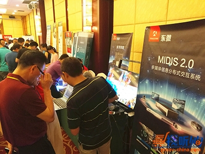 融合多媒体应用,基于行业解决方案,东微MIDIS多媒体交互式现场体验区现场呼声高涨,嘉宾分别莅临展区交流体验,并且讨论接下来的重点园区项目启动,邀请东微定制专属系统方案。