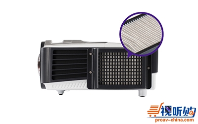 散热和防尘一直是投影机设计中不可调和的一对矛盾,尽管防尘滤网不会把空隙堵死,但无疑减少了散热孔面积。明基DX807ST短焦投影机采用优良的GEN 1.5山型褶皱防尘滤网设计,在保证散热风口面积的情况下,大大提升了空气与滤网的接触面积,在保留了散热能力的前提下将防尘性能最大化,保证了明基投影机内部元器件的正常运行。