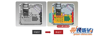 明基DX807ST防尘系列短焦教育投影机采用大直径的多叶风扇搭配可靠性更高的无刷滚珠轴承,再加上通风路线的优化设计,有效引导细微粉尘随散热空气顺畅排出。风路设计尽可能避开光机和色轮等投影机成像的重要组件,有效降低灰尘对投影机寿命的影响。