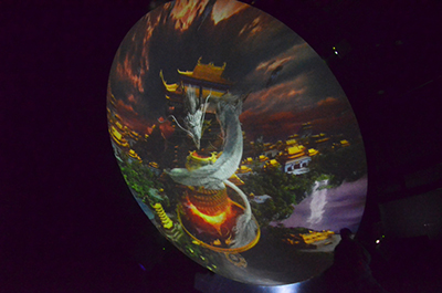 因为画面非常巨大,人是沉浸画面中的,没有办法拍摄全景,且飞行时晃动剧烈。这是体验完之后的拍摄效果,巨龙非常逼真。