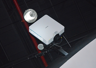 这是位于半球幕顶部的索尼VPL-F720HZL,稳定耐用表现出色