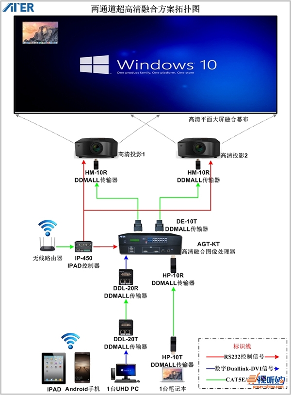 ATER近期推出多款一体式图像融合器,它们贴近专业视听工程系统的典型需求,紧跟专业视听技术发展的潮流,让用户能够轻松过渡到领先应用。一体式图像融合器分为AGT-KT、AGT-ST和AGT-IT三款,单台设备分别支持2、3、4台投影机大屏幕超高清融合呈现。其中以AGT-KT双通道图像融合处理器最为典型。