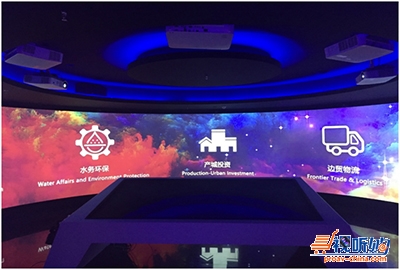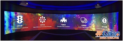 企业展厅是一个展现企业实力的重要窗口,作为企业和品牌形象的依托,企业展厅展示效果有着十分重要的战略意义。广西北部湾投资集团,主要承担立体交通、水务环保、旅游、产城投资等领域的开发建设。为了向客户全方位展现北部湾投资集团综合实力和风采,在企业展厅内采用9台NEC CR5450WL激光商务投影机打造出别出心裁的融合方案,担负起企业风采、企业文化等信息展示窗口的重任。