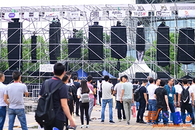室外线阵演示1(展馆A区4.1号馆南门外广场):Ap sound、东雅音响、大睿音频、东本、镭克、iBO、新珑音响、迈听音响、迈雅、声汇、合和音响、悦妙及醉美声