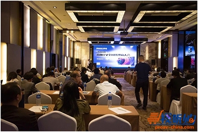 飞利浦商用显示系统PM陈嘉凌登台为全国代理商进行了「全媒体商用显示器技术」推介。