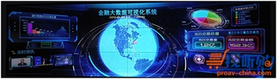 同样参观者可以通过手势动作调出大数据模块,同辉信息打造的金融大数据可视化平台主要针对金融行业数据量大而抽象、类型多而复杂等特点,以及业务的需要和实际应用,将复杂和抽象的数据转化为可视化图形或图标,以直观化、简单化的方式呈现在大屏幕上,充分发挥大屏幕性能优势的同时大幅度提升展示效果,并且可以连接金融行业整体业务,让数据洞察变得轻松快捷。