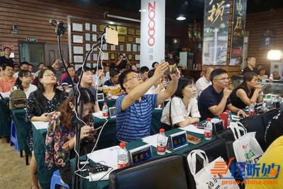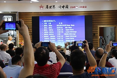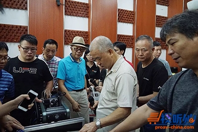 大家现场第二遍聆听了专业扩声系统声音效果后,移步到隔壁场地聆听发烧音响,听音过程中老师和老总一起突然揭晓ZG牌无损数字功放驱动的美国原装的发烧音箱,讲座现场进入高潮。