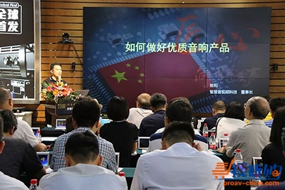广东音视频科技有限公司董事长陈利先生讲述公司的成立初衷,在市场的大环境下设立音视频研究院的现实意义和自己心中对于行业的执着追求。讲座上更是以怎样做好优质产品引得在场人员的思考,也讲述了音视频研究院成立以来取得在行业内的先进成就:推出新一代的classD功放,全负载,全电压,全系列的产品。