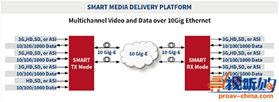 SMART Media Delivery Platform™是一款四通道3G/HD/SD-SDI、ASI自适应的集成了非阻塞层2/3切换的多功能VoIP网关 。SMART Media Delivery Platform™采用SMPTE ST 2022 VoIP封装标准、前向纠错(FEC)和无缝保护切换。此外,SMART Media Delivery Platform™还提供了VLAN标记和带宽管理功能。