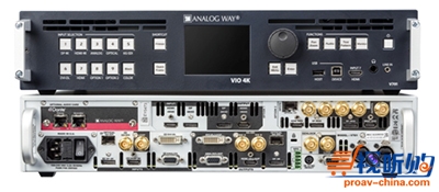 Analogway VIO 4K- Ref. V701是目前市场上接口最全,输入/出接口最丰富的“All In One” 旗舰级4K视频处理器。DP1.2,HDMI2.0-4K@60p,12G-SDI and 4x3G-SDI,DVI/RGB,YUV,CV,光纤SDI,同步信号的任意输入和输出,适用于任何转换的“All In One”解决方案。