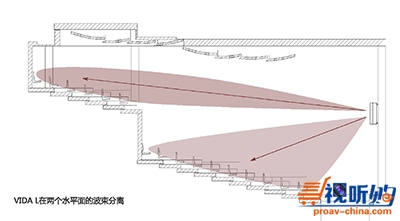 除此之外 VIDA系统的统波束可控及波束分离的特性在这个项目中大显身手,可以完美的将声音投射到需要投射的观众区域而不受建筑结构的干扰。