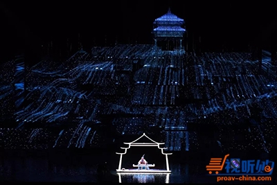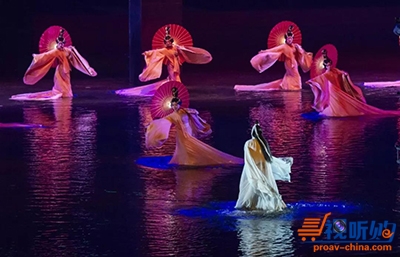 表演区域是一个长160.8米、宽54米、面积达8600平方米的水上演出平台,范围广、跨度大,为了确保舞台演员接收信号的时间一致,返听系统选用多只Community R系列音乐解决方案高音质扬声器,实现表演平台均匀的声场覆盖。主信号系统使用三层光纤交换机,在表演平台及观众席平台上的多个机房搭建了一套专用局域网。