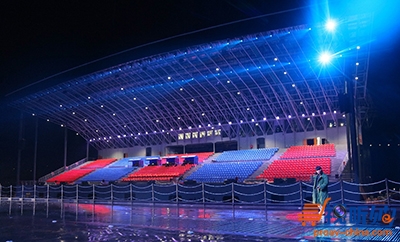 为达到演出的最佳效果,演出舞台及观众区搭建于趸船之上,观众区长111.6米、宽36米呈长条阶梯形。