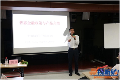 中国建设银行番禺支行业务经理荣志春介绍银行推出扶持企业的融资、贷款等优惠政策。其中荣经理详细介绍了建行普惠金融政策与优势以及普惠金融重点产品和特色服务。