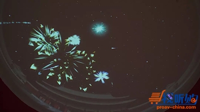 第三章是“万寿盛典 / 普天同庆”,奥图码利用穹顶投影技术,呈现出一场万紫千红、百花齐放的“烟花”秀。
