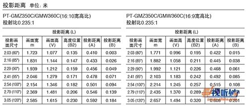 选答题:请列出PT-GMZ350C系列的投影距离。