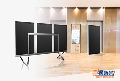除常规壁挂前安装和座装外,该产品还支持双屏拼接,适用于大面积会议室、礼堂等场景。