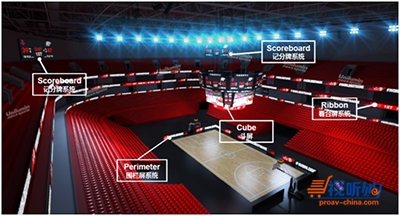 根据设计,位于中层的4面屏在赛事中将为现场观众提供实时、高清的赛事画面,2至3层观众席也可对精彩赛事一览无余。顶层8面屏将作为赛事计时计分、赞助商品牌传播等显示媒介,底部环形屏则将作为赛事、场馆信息展示窗口,为观众提供贴心的全方位服务。