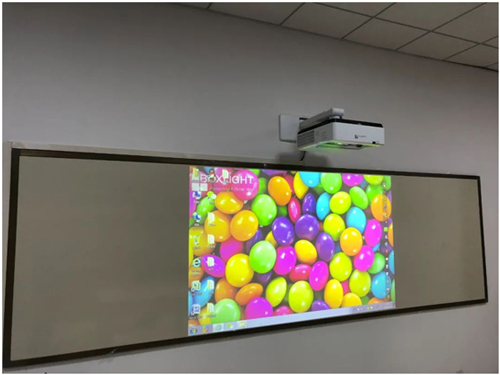 而对于面积相对较小的教室,则采用HLD超短焦投影机,超短焦投射比可以很好解决遮挡问题,4600lm亮度即使在宽敞明亮的教室环境中,也能观看清晰亮丽的画面。