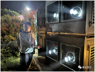 灯光设备安装和布置是该项目成功应用的关键。建业显示的工程师们经过精密的计算和优化,将投影、音响、灯光、激光布置在恰当的位置,以确保其最佳观看效果。同时,他们还为项目提供了灵活的安装方案,以适应不同的需求。