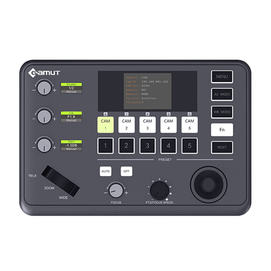 一款真正意义上的视频会议摄像机控制键盘,有很强的操控性,全面兼容控制网络、串口摄像机,支持网络Onvif、Visca,串口Visca、Pelco-D/P协议等。支持摄像机快速切换,所有摄像机参数均可通过按键操作程序完成设置,方便快捷;采用的工业级蓝屏液晶模组显示效果出色,金属壳体,硅胶按键设计,手感好;字符细腻清晰,支持摇杆无极变速控制等。