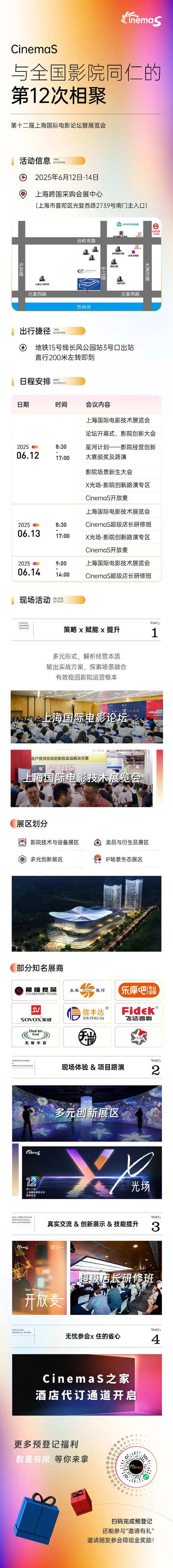 由中国电影发行放映协会支持,全国19家省级协会共同协办的第十二届上海国际电影论坛暨展览会(CinemaS2025)将于2025年6月12-14日在上海跨国采购会展中心举行。