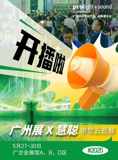 主办单位与慧聪音响灯光网再次携手推出为期3天(5月27至29日)的“广州展线上直播间”,特别组建直播团队就展会盛况、品牌展商以及亮点产品进行直播,赶紧预约观看吧!