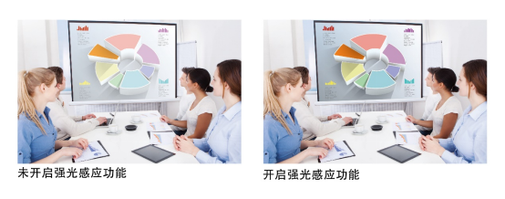 利用内置光线传感器实时监测环境照明度并实时调节投影图像亮度和色调,使以往在明亮环境中难以看清的暗部区域细节都可清晰再现。