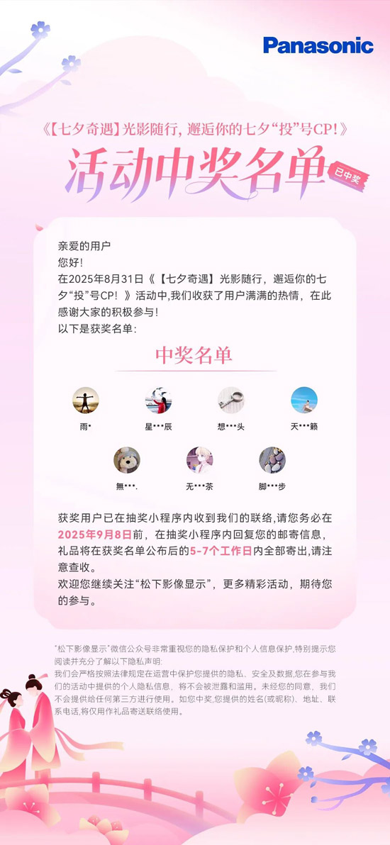 《【七夕奇遇】光影随行,邂逅你的七夕“投”号CP!》活动中奖名单