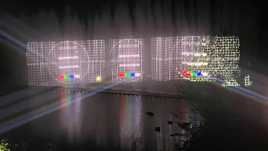 硬核防护并行: 施工采用模块化分组作业,并为投影机集成IP65防护箱、冷却及防雷系统,确保在临水、高空环境下的稳定性与施工效率