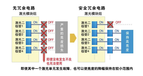 冗余的激光光学引擎(冗余电路)和备份信号功能带来强大的容错性,可在激光模块损坏或信号丢失情况下,保持画面输出,保障展演无“意外”,不负观众期待。
